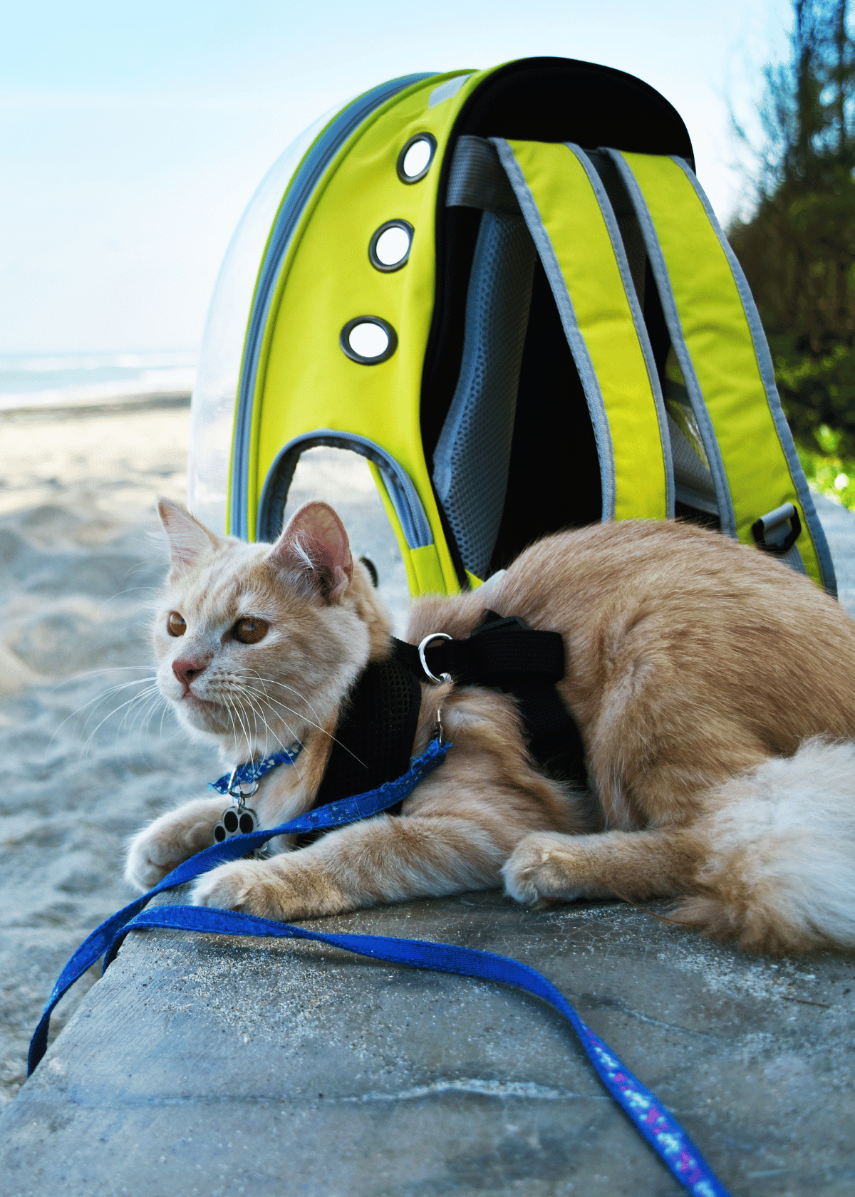 A clear cat backpack lets your pet enjoy an outing in comfort and safety.