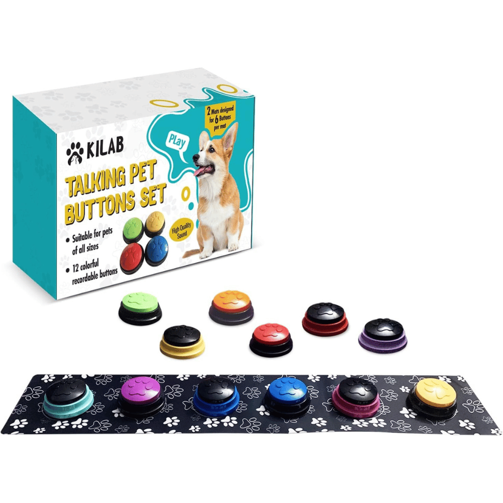 With this exclusive Kilab Talking Dog Buttons soundboard set, you can easily teach your pet the commands they need. Each set includes 12 recordable buttons in various vibrant colors for visual stimulation, as well as two mats to organize them on for easy access during learning sessions. In addition, these buttons are specifically designed with a soft yet sturdy structure that your pet’s paw or nose can press without any difficulty. Plus, all instructions and materials needed come right with it - so you can start teaching quickly!